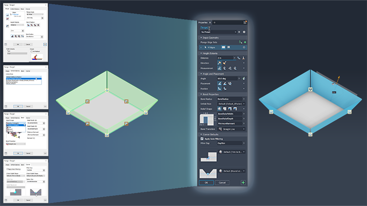 A következő Sheet Metal parancsok kerültek frissítésre, beleértve a tulajdonság panel felületét és munkafolyamatait: