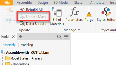 Hegesztett összeállítás modellezésnél használt parancsok használata után, mint pl. a Cut, vagy Extrude, az “Update Mass”-al vezérelheted, hogy frissítésre kerüljön-e a tömeg.