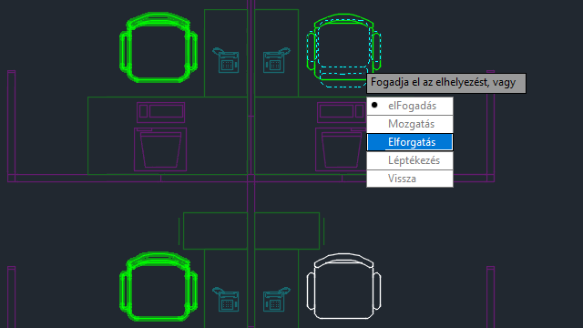 A meglévő blokkdefiníció kiválasztása után módosíthatod a léptéket, vagy akár elforgatást és mozgatást is végezhetsz, így egy lépésben az összes azonos objektumot módosíthatod.